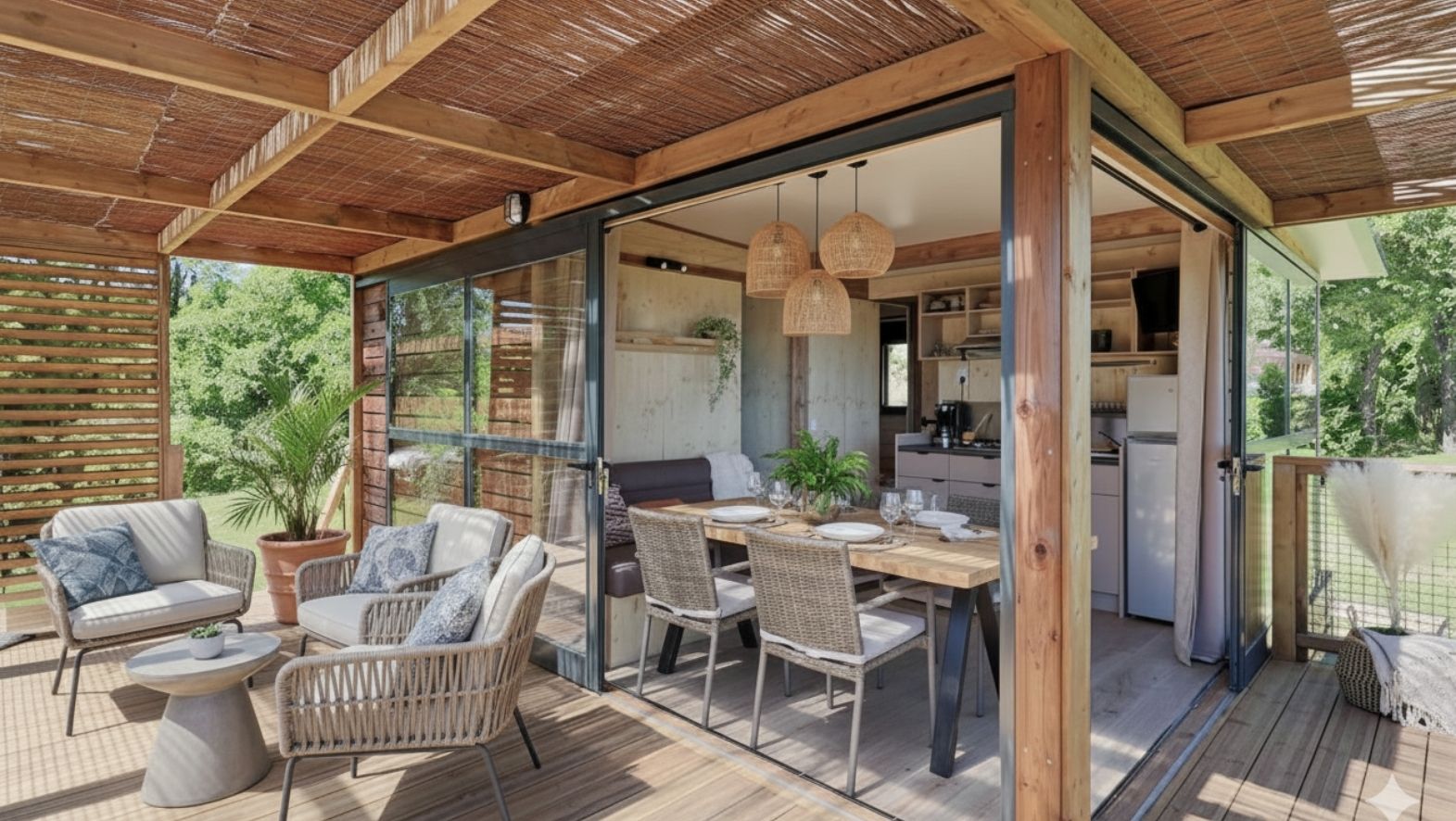Optez pour le lodge, un hébergement atypique et cosy qui vous plonge au cœur de la nature tout en vous offrant un confort haut de gamme. Construit en matériaux naturels et parfaitement intégré à son environnement, le lodge allie authenticité, intimité et élégance.